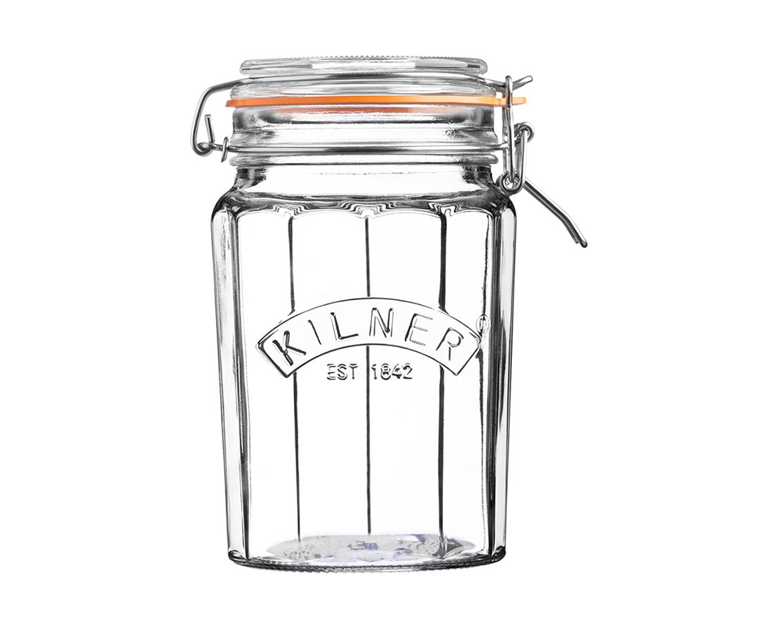 Гранёная банка с защёлкивающейся крышкой прекрасно подойдёт для хранения готовых или сухих продуктов. Благодаря металлической конструкции и резиновой прокладке, крышка плотно прилегает к краям банки и обеспечивает вакуум для долгого хранения продуктов. Банки для консервирования бренда Kilner отлично подойдут для домашних заготовок: солений, маринадов и варенья.