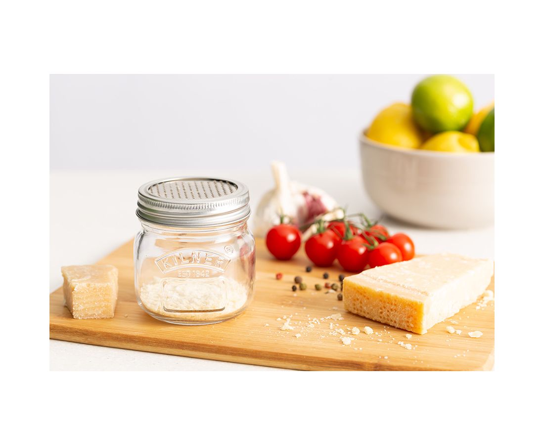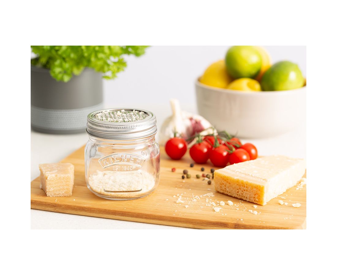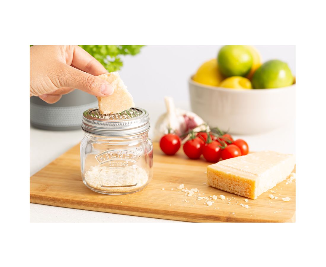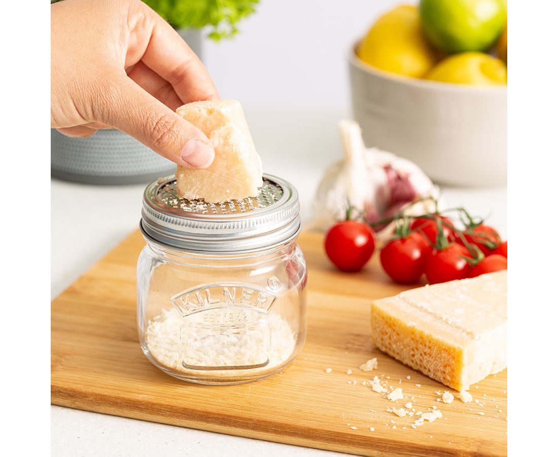 Банка с крышкой-теркой позволяет без труда натирать чеснок, имбирь, пармезан, цедру цитрусовых и другие продукты.