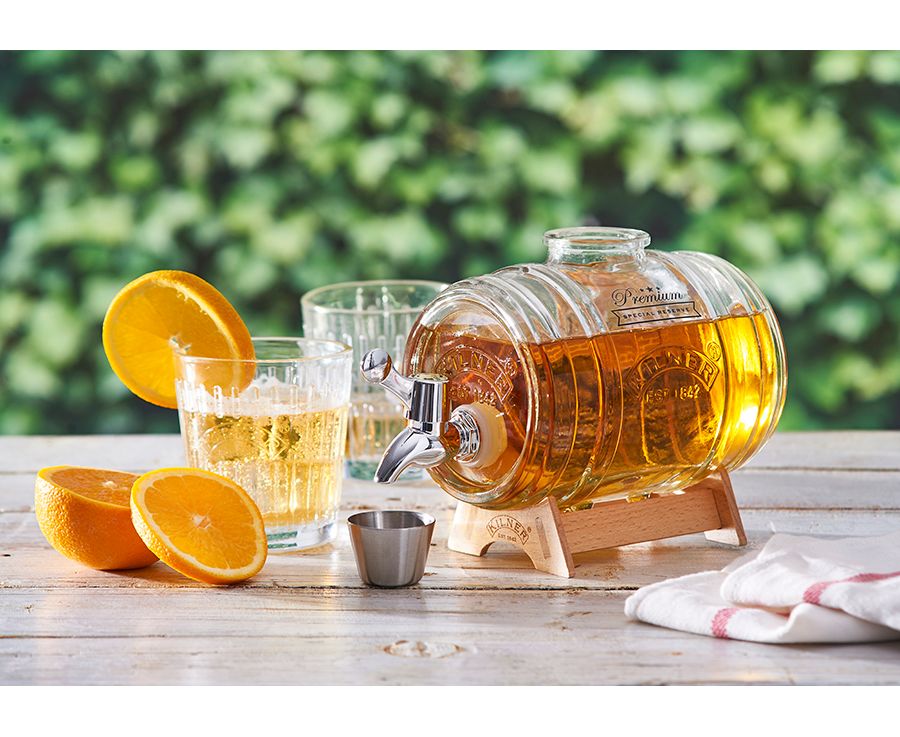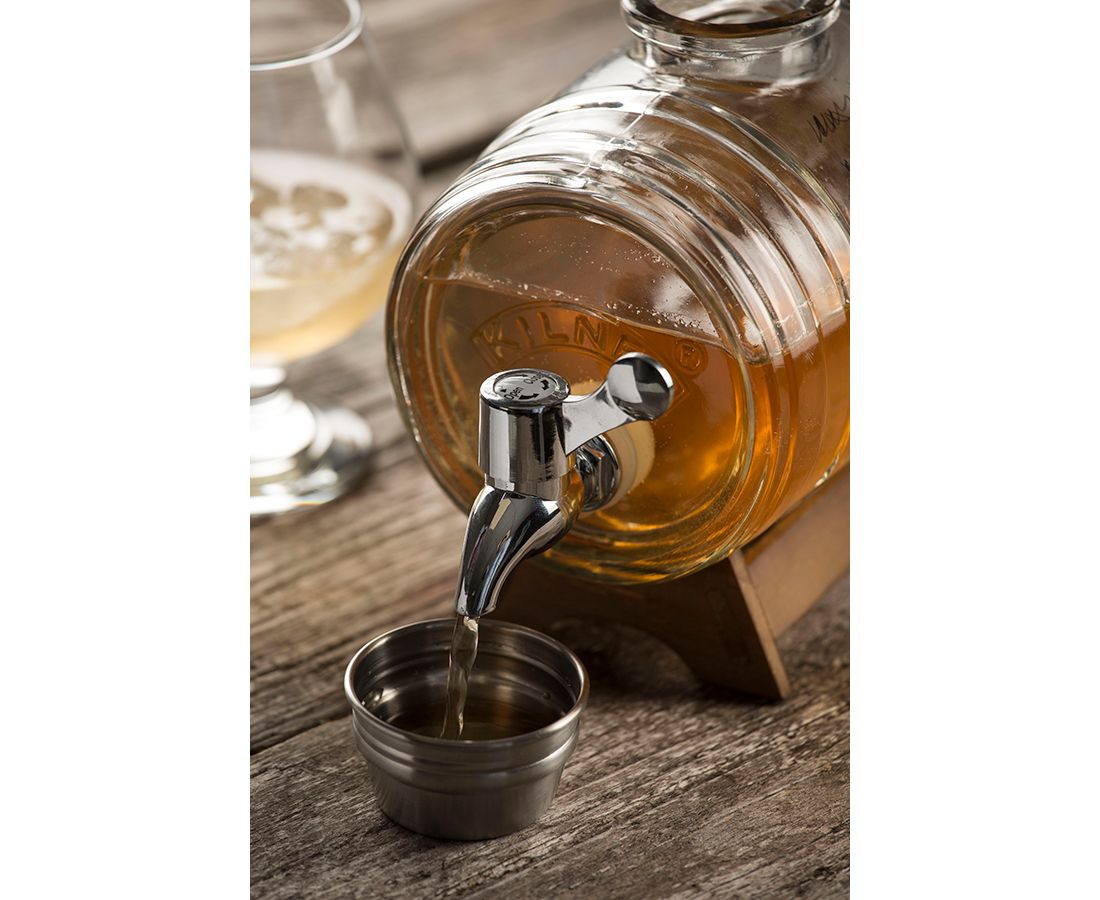 Диспенсер объёмом 1 л в форме бочонка незаменим для вечеринок дома или на открытом воздухе. Он отлично подойдет для сервировки любых освежающих и алкогольных напитков: сидр, пиво, бурбон, сок, лимонад, фруктовая вода, пунш, лонг-айленд ти. , ,Диспенсер выполнен из стекла в ретро-стиле и украшен большим логотипом бренда Kilner. Он оснащен пластиковым краном, плотно закрывающейся крышкой и удобной подставкой для фиксации диспенсера в горизонтальном положении. Диспенсер для холодных напитков особенно пригодится в жаркое время года. Не подходит для горячих напитков. Он упакован в красивую коробку и станет отличным подарком.
