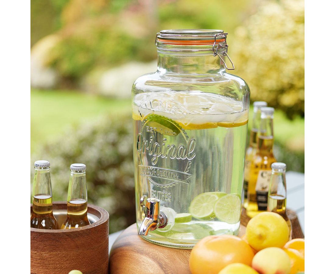 Диспенсер объёмом 8 л незаменим для вечеринок дома или на открытом воздухе. Ёмкость отлично подойдет для подачи любых освежающих напитков: сока, лимонада, фруктовой воды, пунша, лонг-айленд ти, мохито. Диспенсер выполнен из стекла и украшен большим логотипом бренда Kilner. Банка оснащена пластиковым краном и удобной плотно закрывающейся крышкой. Диспенсер для холодных напитков особенно пригодится в жаркое время года. Ёмкость не подходит для горячих напитков и мытья в посудомоечной машине.