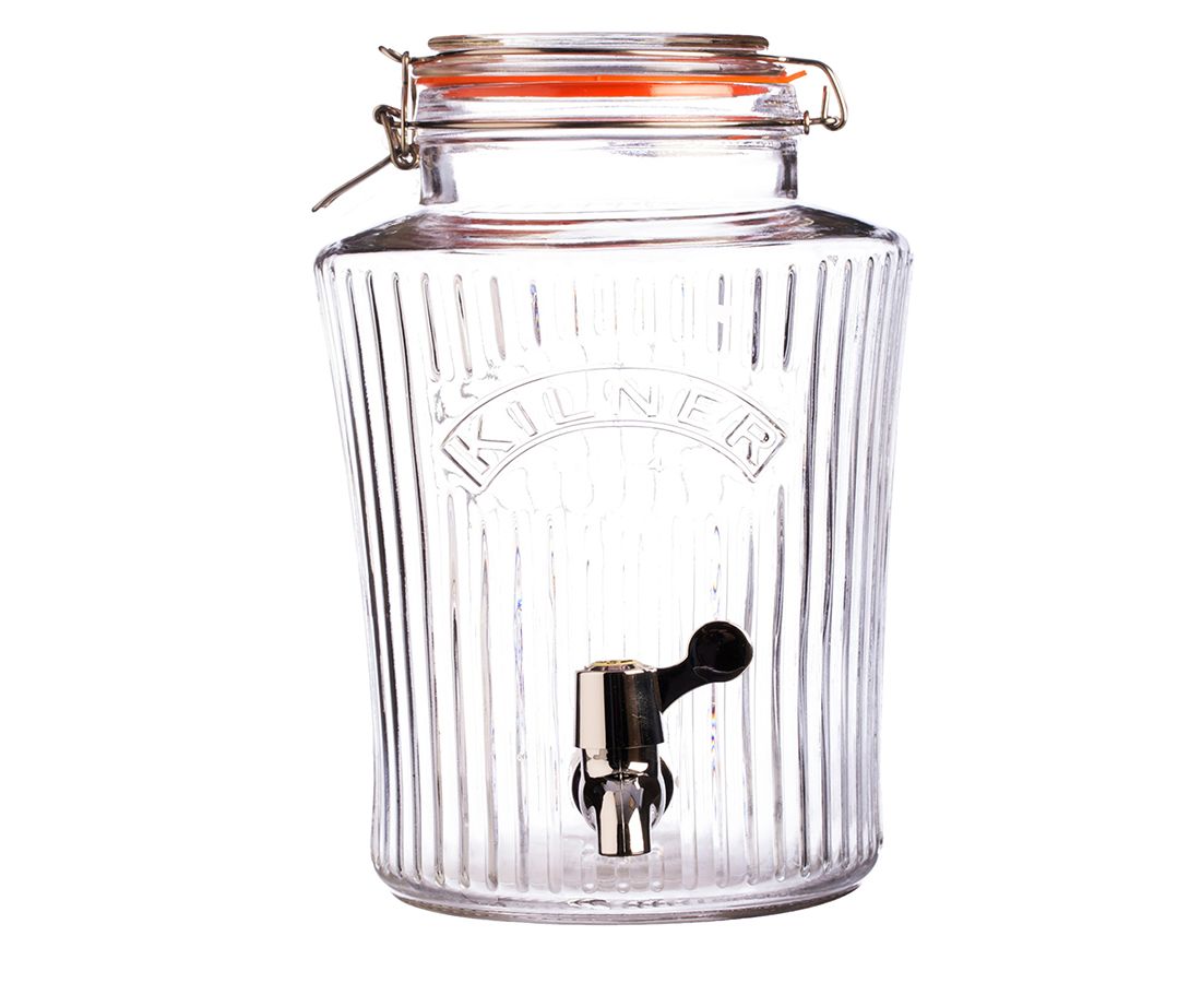 Диспенсер объёмом 8 литров незаменим для вечеринок дома или на открытом воздухе. Он отлично подойдет для сервировки любых освежающих напитков: сок, лимонад, фруктовая вода, пунш, лонг-айленд ти, мохито. , ,Диспенсер выполнен в ретро-стиле из стекла и украшен большим логотипом бренда Kilner. Он оснащен краном из нержавеющей стали и удобной плотно закрывающейся крышкой. Диспенсер для холодных напитков особенно пригодится в жаркое время года.