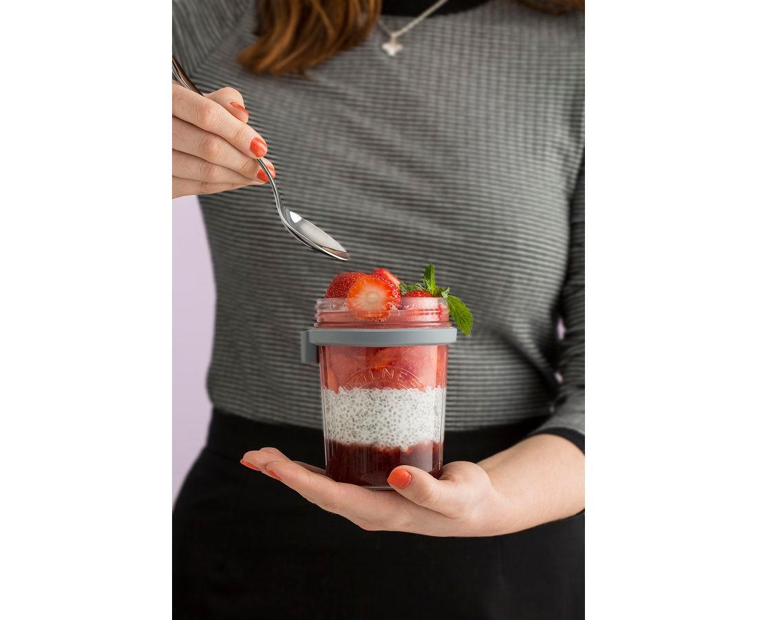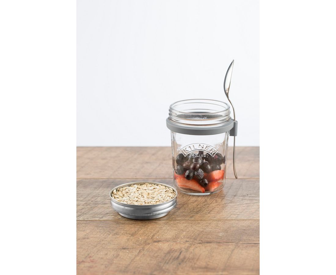 Набор для завтрака от Kilner – отличный вариант для всех, кто следит за своим питанием! Банку с герметичной крышкой и десертной ложкой можно взять с собой на работу или в дорогу. Емкость подходит для хранения готовых продуктов: овсяных хлопьев, йогуртов, сухих завтраков с сухофруктами, орехами, семечками и ягодами.