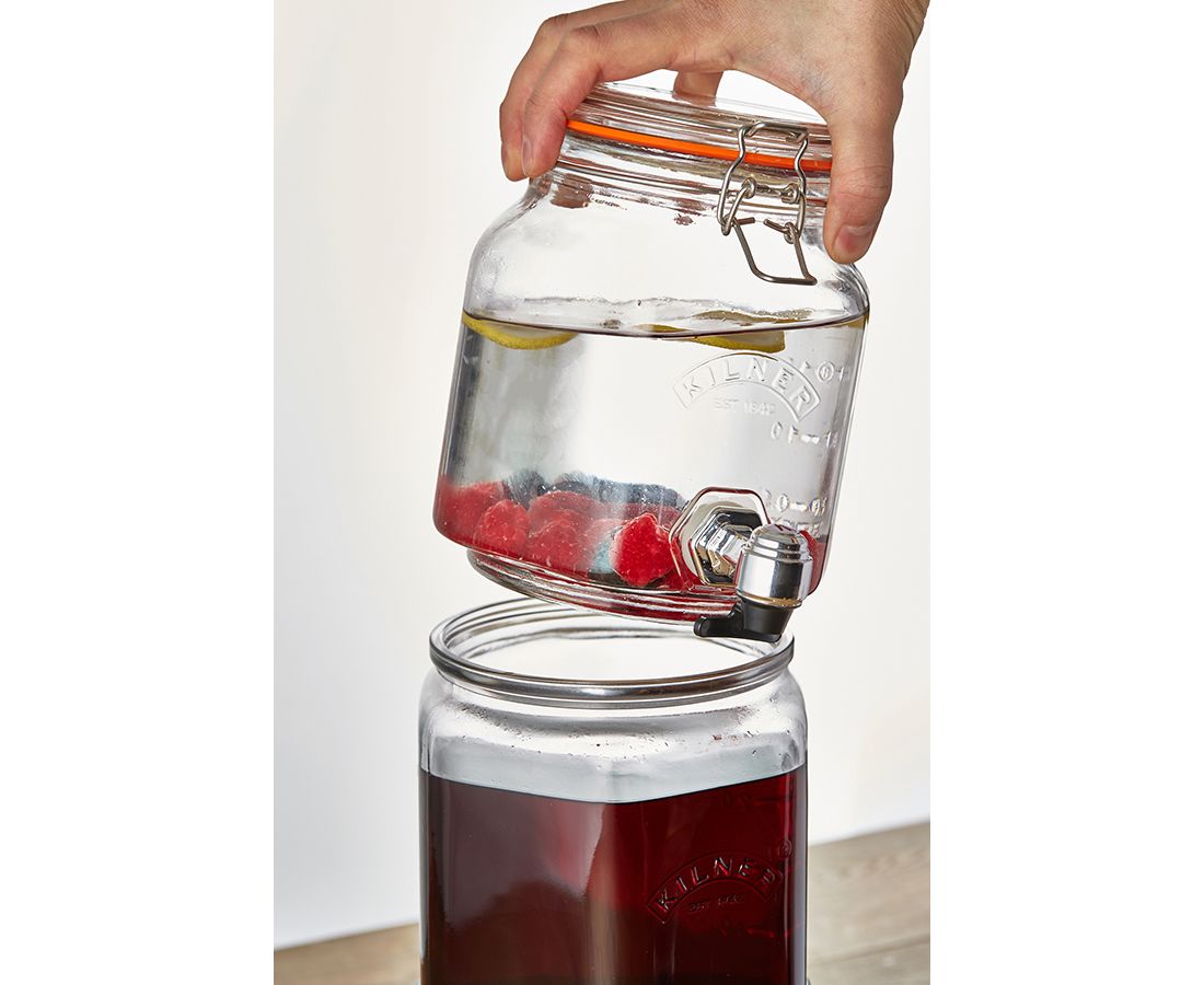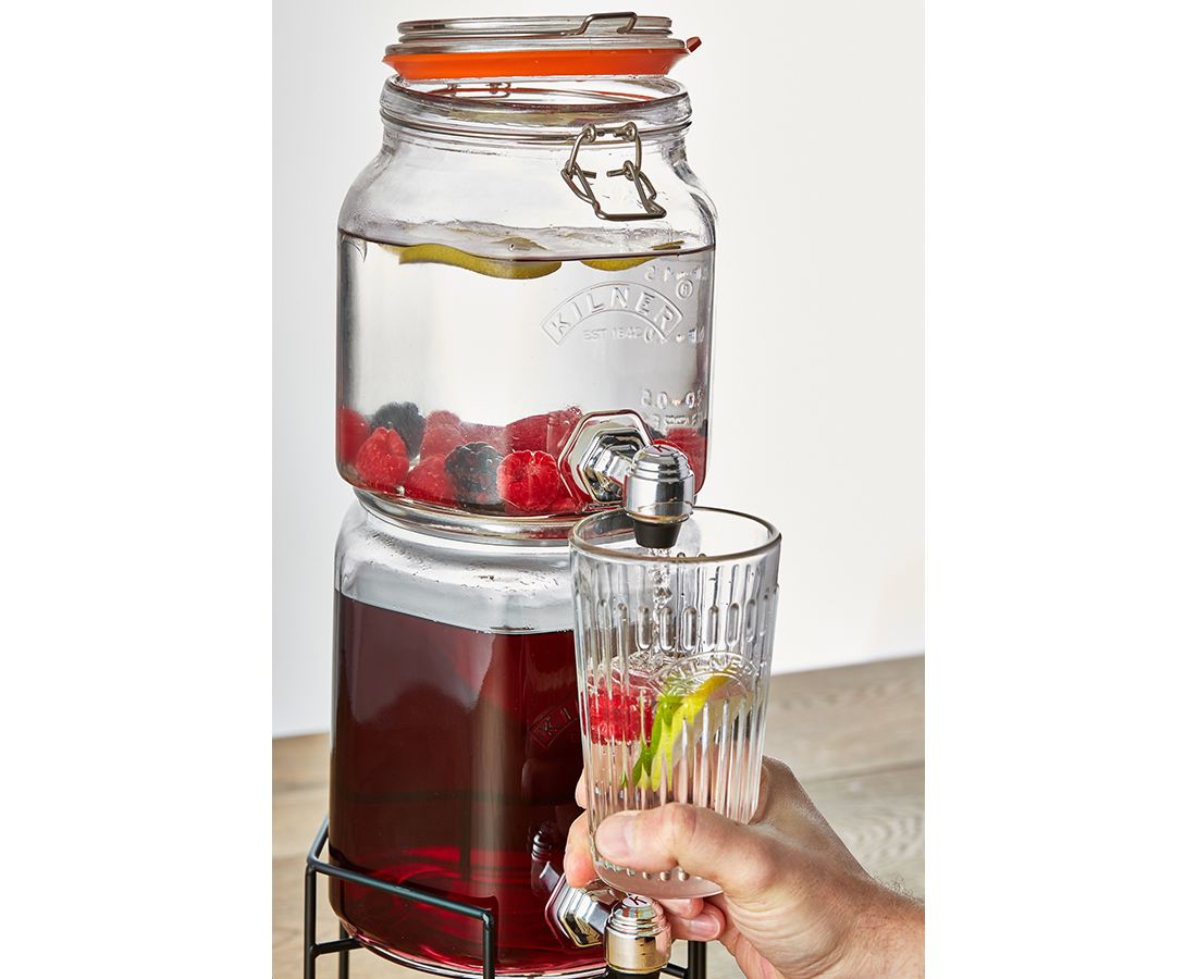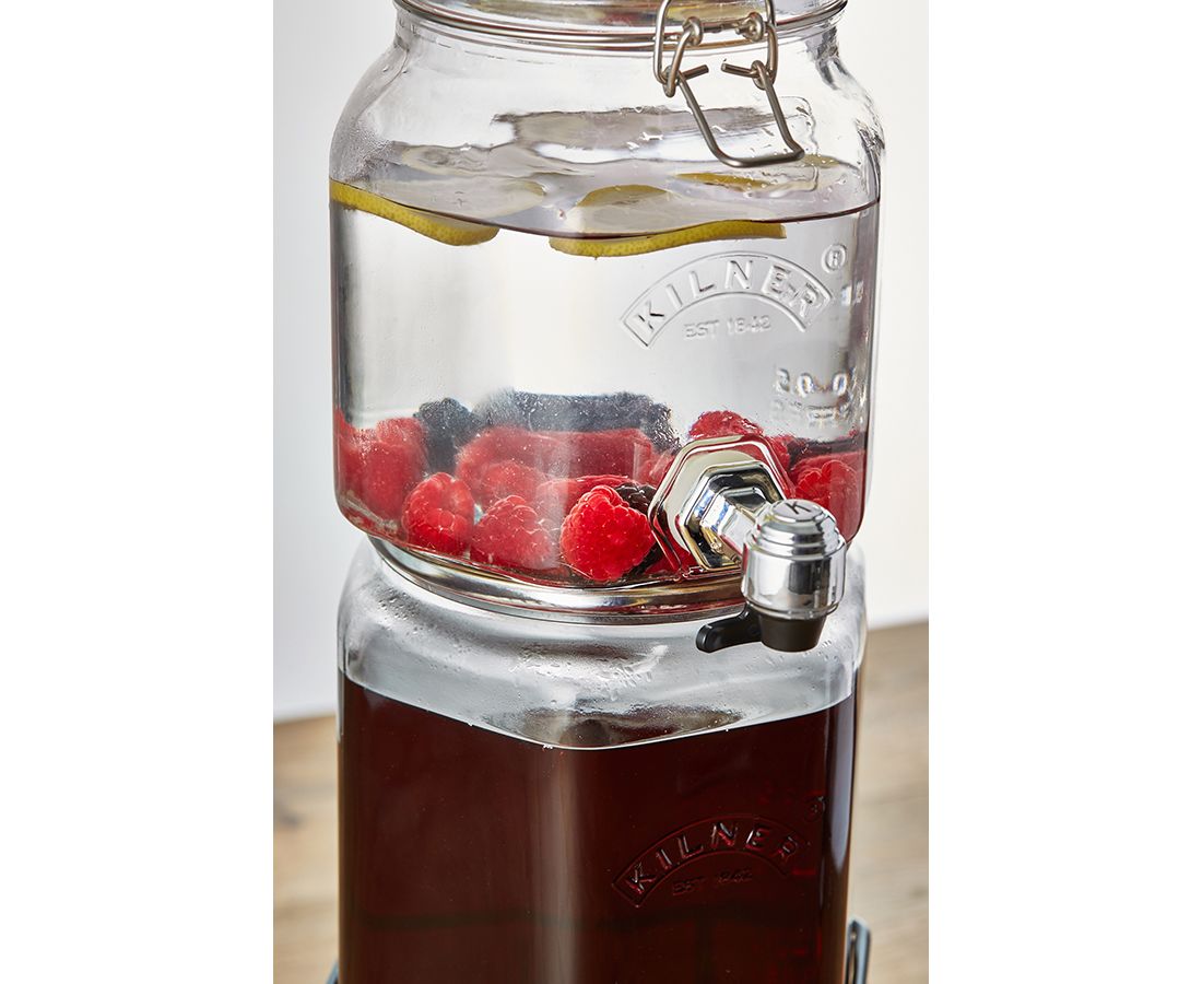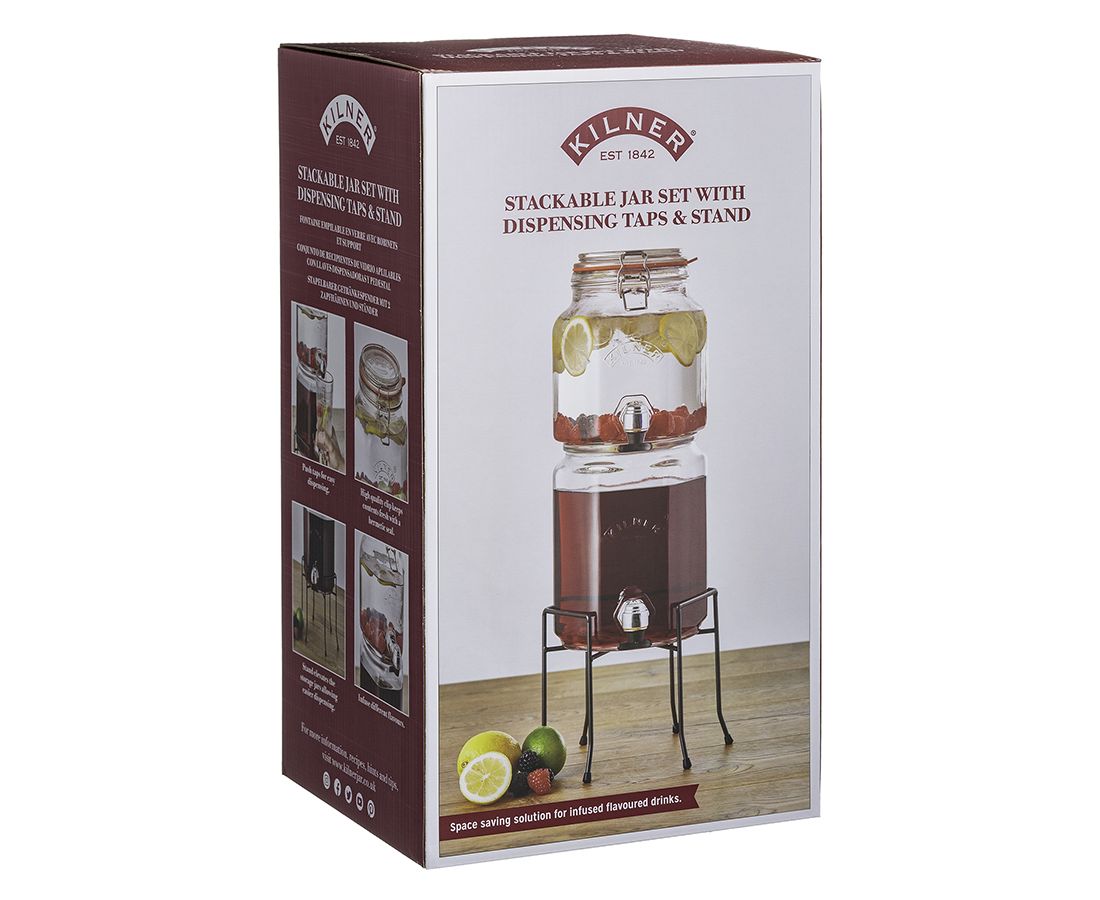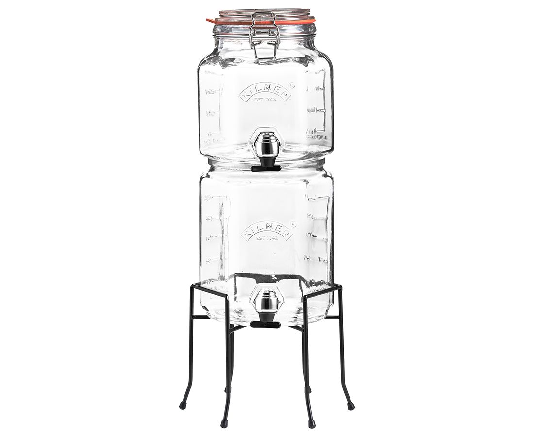 Набор из 2 диспенсеров на подставке станет незаменим атрибутом вечеринок в доме или на открытом воздухе. Аксессуары идеально подойдут для сервировки любых освежающих и алкогольных напитков: сидра, пива, бурбона, сока, лимонада, фруктовой воды, пунша, лонг-айленд ти. Емкости оснащены пластиковыми кранами, плотно закрывающимися крышками и удобной подставкой для фиксации в вертикальном положении. Диспенсеры выполнены из прочного стекла и украшены логотипом бренда Kilner. Набор упакован в красивую коробку и станет отличным подарком.