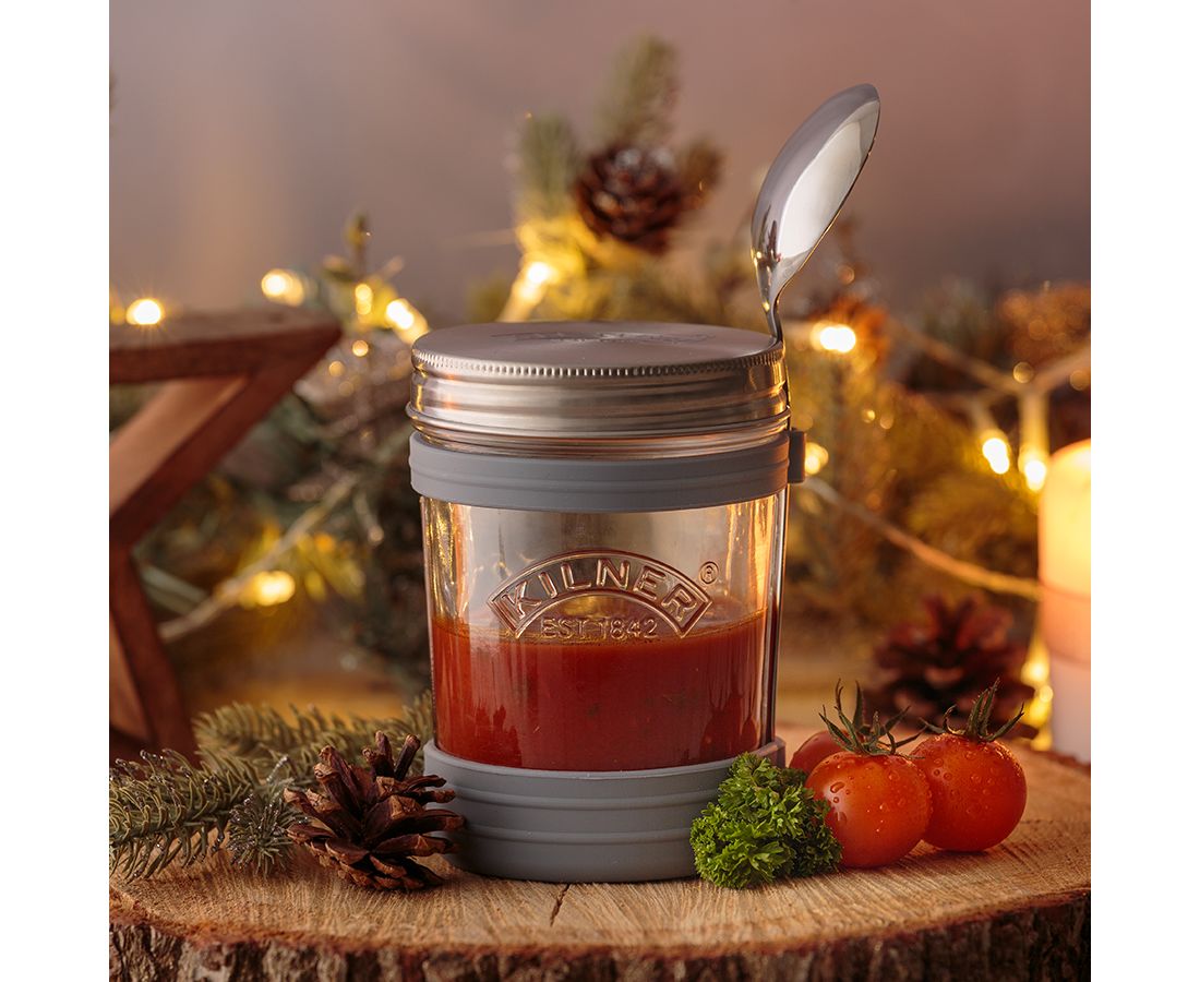 Набор из банки и ложки для супа от Kilner – отличный вариант для всех, кто следит за своим питанием! Банка с герметичной крышкой и ложкой идеально подходит для хранения и транспортировки супов. Она станет незаменимой на работе или в дороге. Банку можно использовать для разогрева пищи в микроволновой печи. Для этого достаточно убрать ложку и снять металлическую крышку.